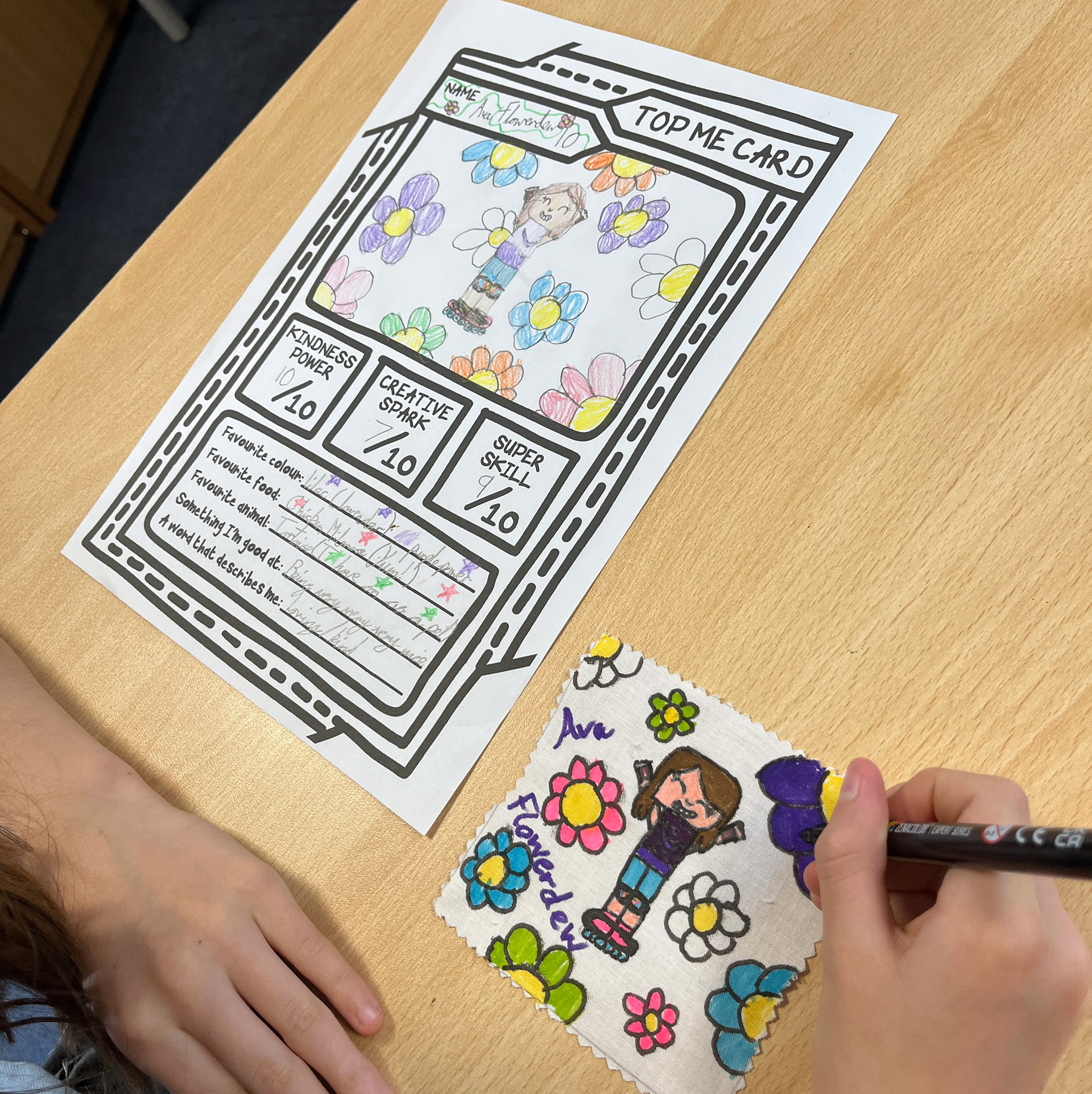 This joyful project encouraged pupils of Greenwood Primary School to explore what makes them unique through colourful creativity, character design and collaborative textile art.