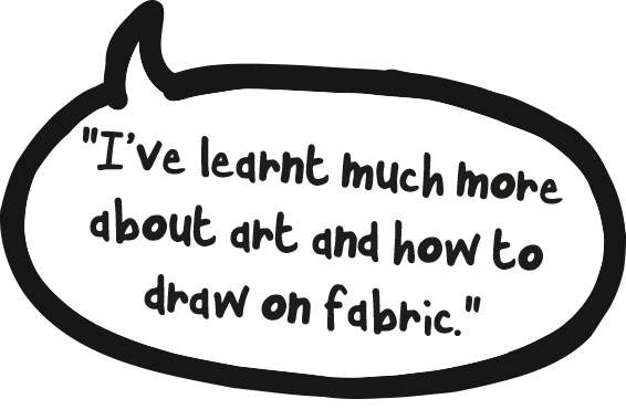 Each child’s portrait was drawn on a fabric square with fabric markers using bold lines and personal colours.