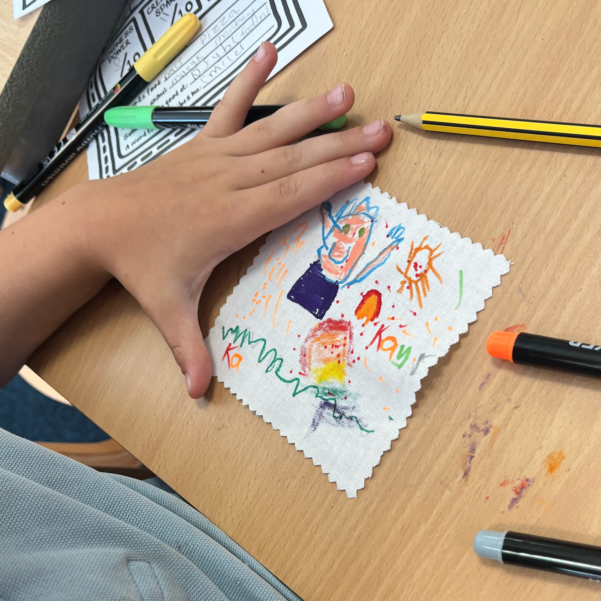 Finally, we drew bold, colourful portraits onto fabric squares to represent ourselves in a school-wide quilt.