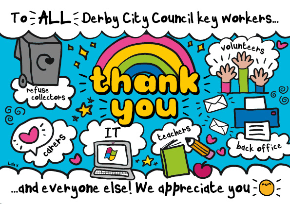 A graphic for Derby City Council to use on their social media channels and at their staff conference to celebrate their key workers during the pandemic. I made sure the design was fun and reflected the positive message.