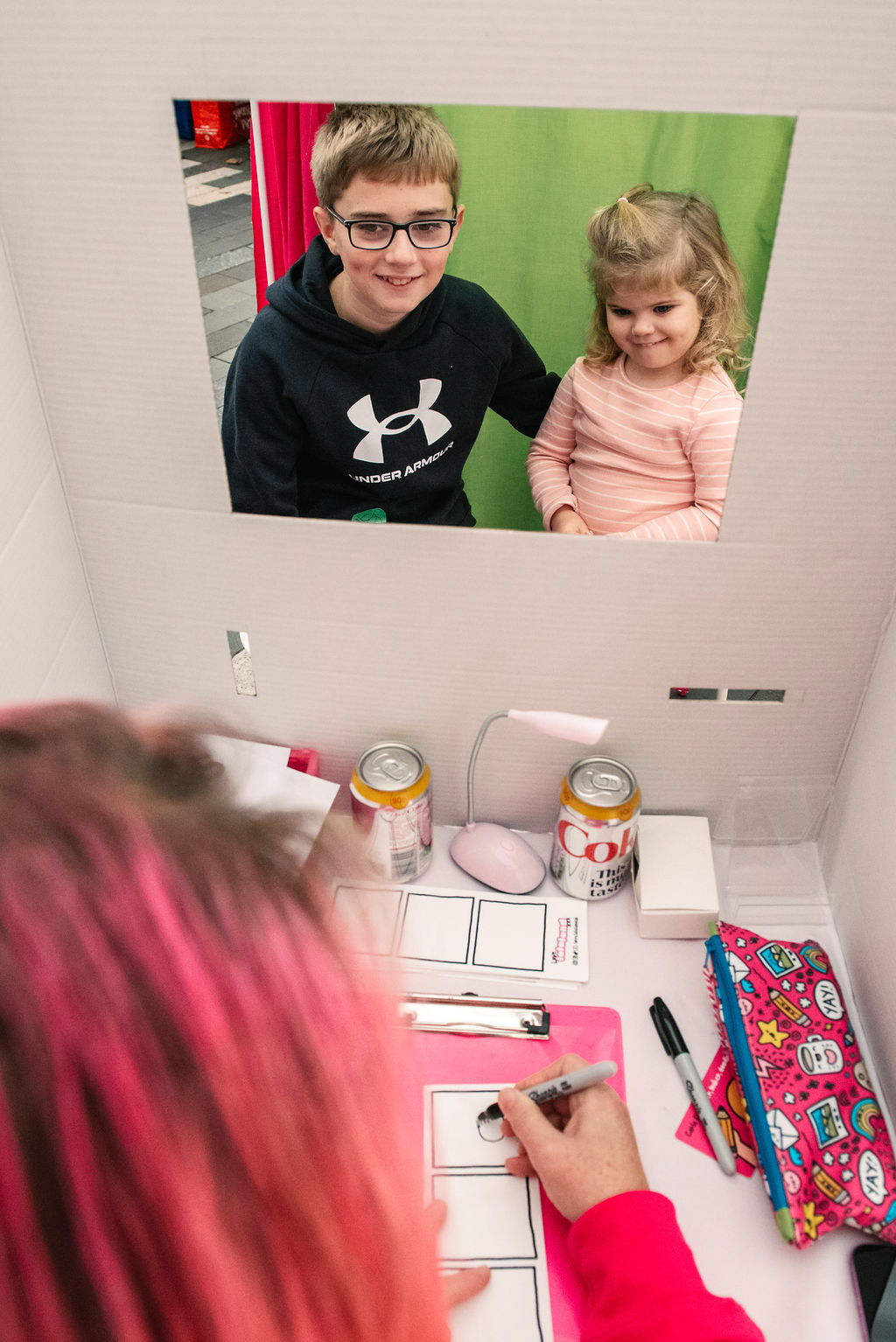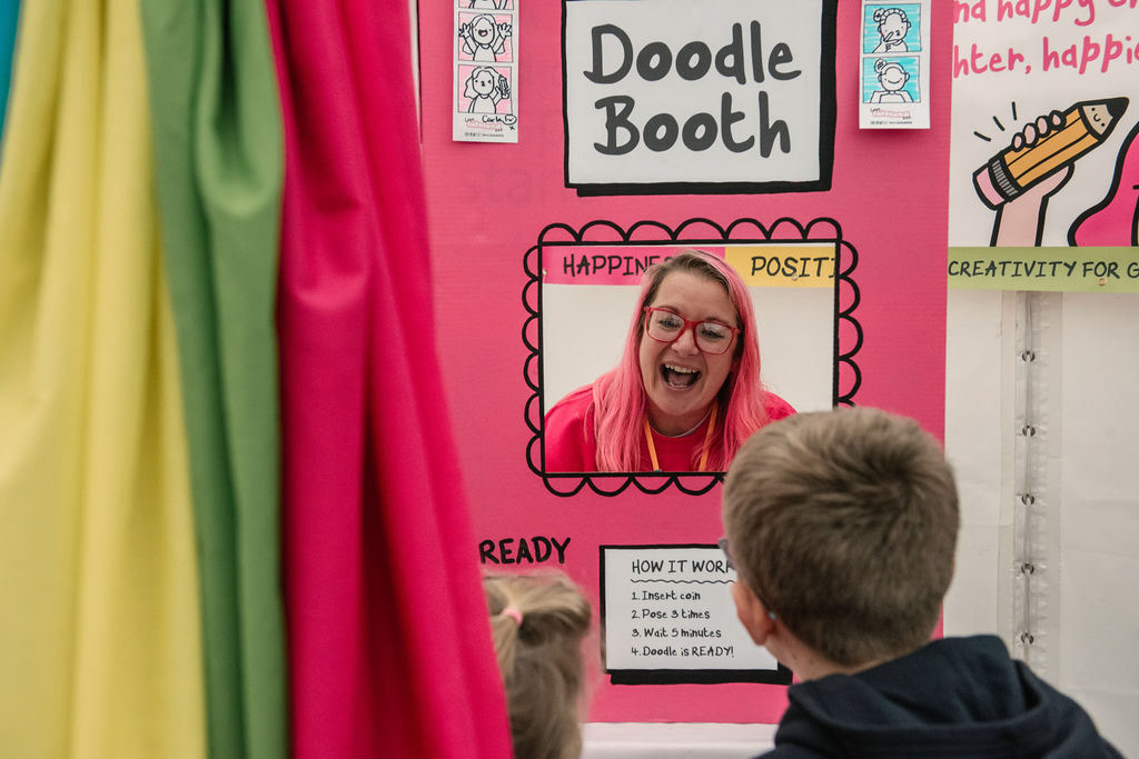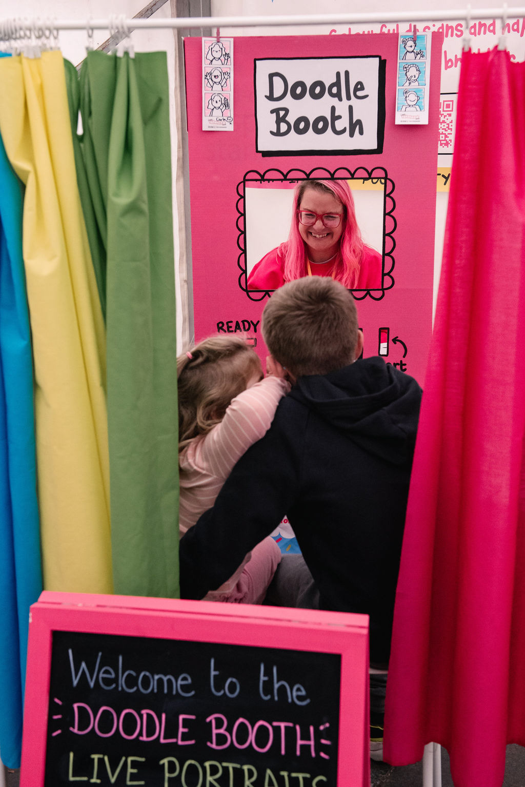 Just like a vintage booth, their portrait slides out at the end, a delightful surprise reveal, giving them a one-of-a-kind keepsake to take home. It’s entertainment while you wait, complete with chatter, laughter, and the occasional happy tear and, of course, what happens in the Doodle Booth stays in the Doodle Booth!