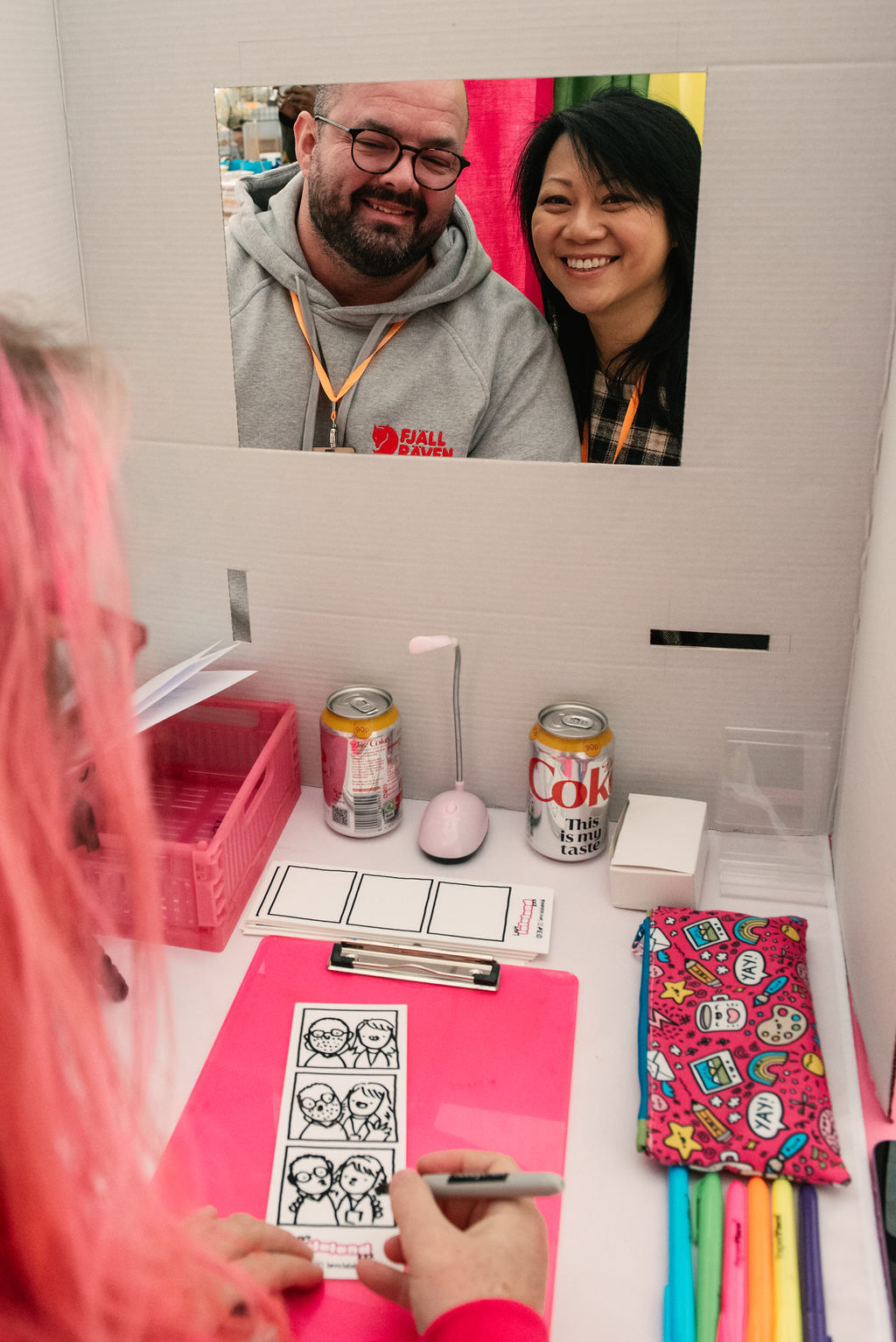 Introducing The Doodle Booth - a live, interactive pop-up portrait experience that blends the charm of a classic photo booth with the magic of a real human artist. Guests step inside, drop in a coin, and take their seat behind the little curtains, striking three poses in three minutes while I capture their personality in a playful illustrated style.